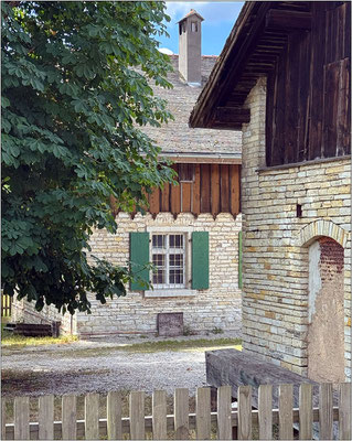 Die gibt es immer noch und das Ganze ist jetzt denkmalgeschützt. Auch die Fensterläden sind die von damals – sie wurden 200 Jahre lang geflickt, genagelt, geschraubt, mit Blech beschlagen – jedenfalls irgendwie wieder instandgesetzt.